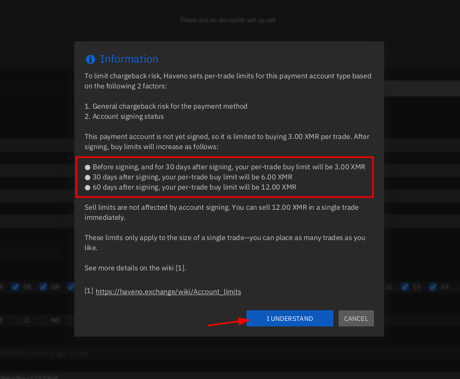 Actuellement nous sommes limités à 3 XMR, mais progressivement au fil du temps nous pourrons faire jusqu'à 12 XMR d'échanges à la fois après 60 jours de signature. C'est pour réduire les risques de rétrofacturation. Une chose à noter ici est que nous pouvons créer plusieurs échanges SEPA pour XMR, contrairement à nos exemples précédents.